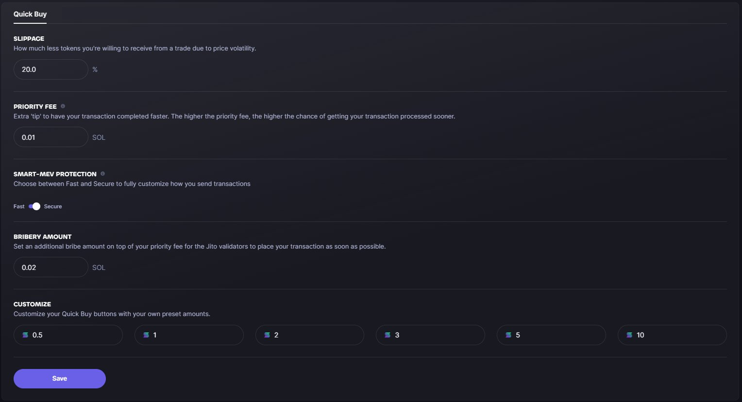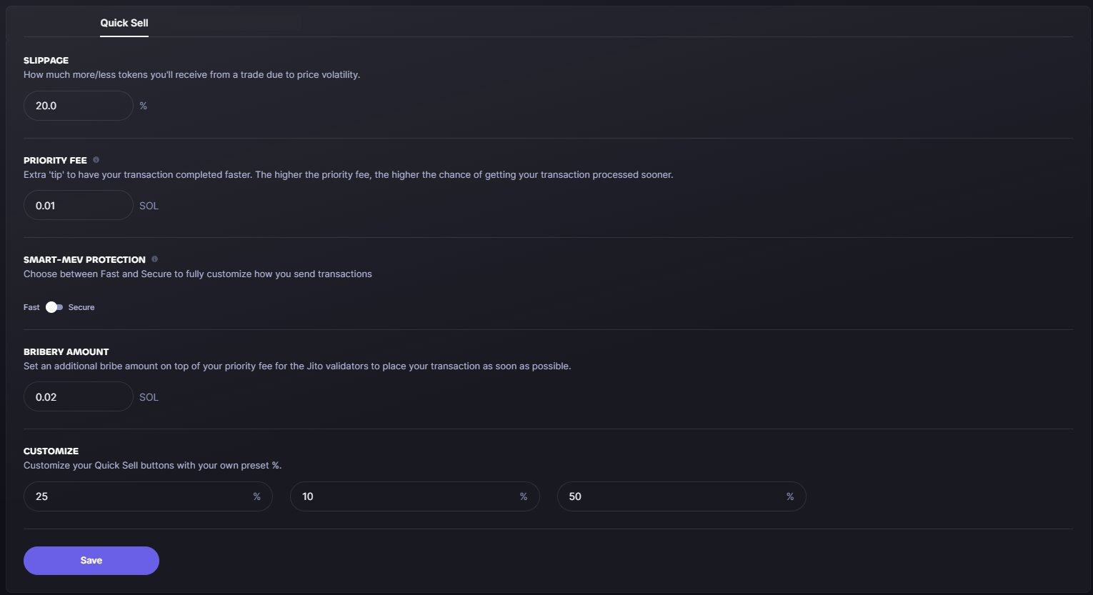 Quick Sell: Same as Quick Buy, but turn off MEV protection because: